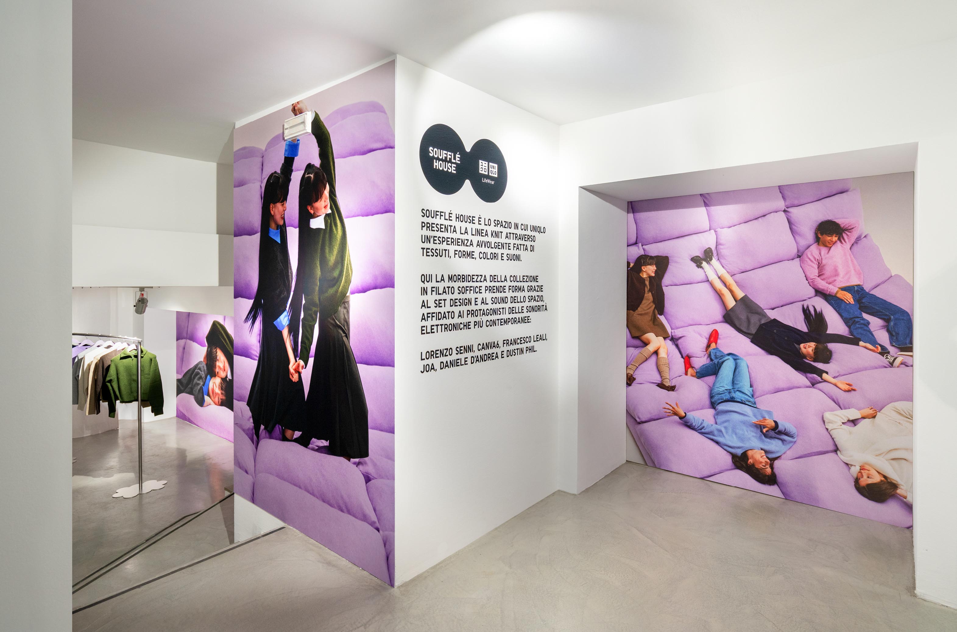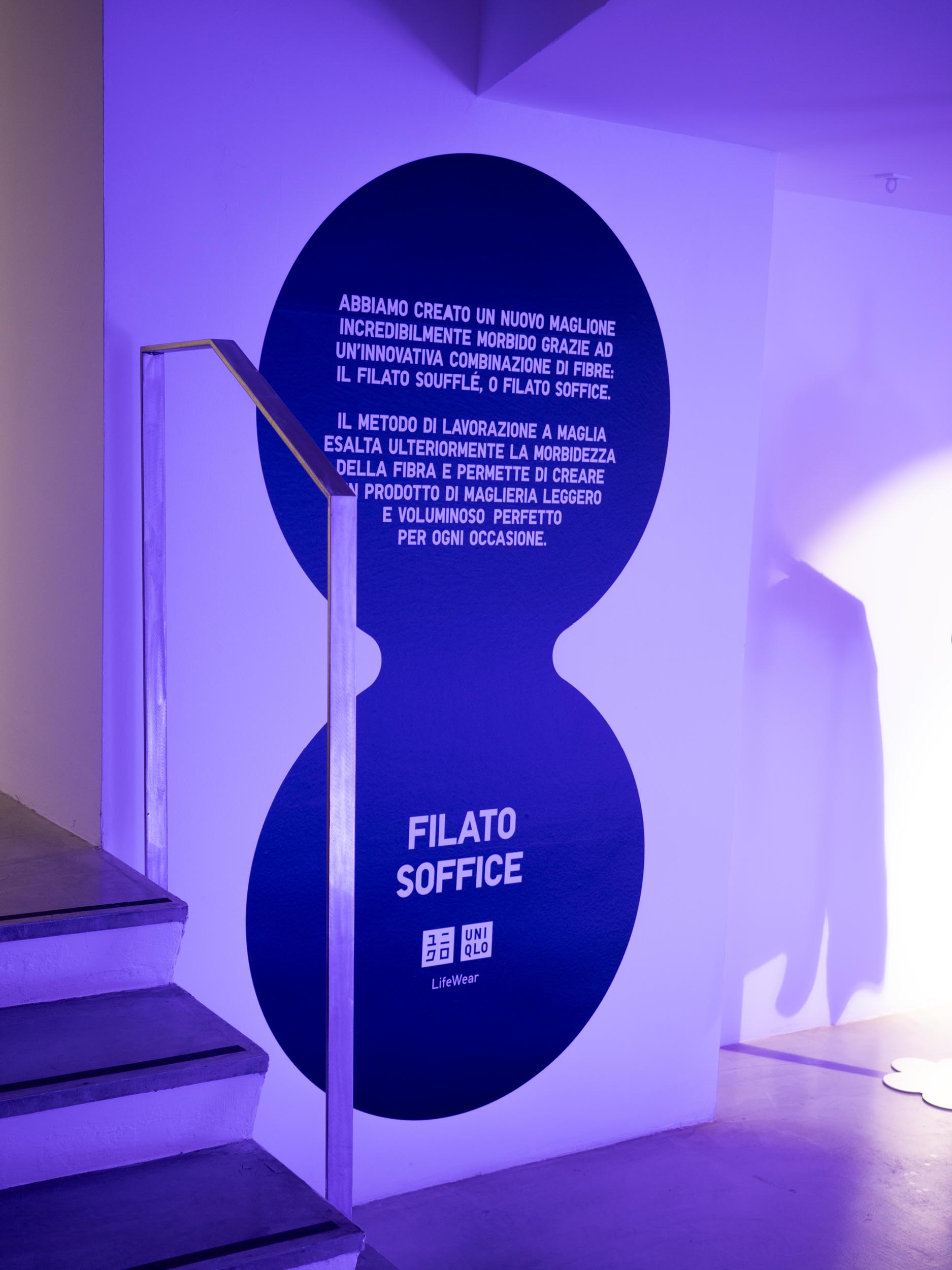 The latest Uniqlo Soufflé collection is all about softness and warmth. Its two days launch celebration welcomed guests in an immersive environment where those main features came to life through materials and tactile experiences curated by the set design studio Finemateria. At its core, the soundscapes of the Italian electronic music frontline: Lorenzo Senni’s latest compositions live set, opened by Canva6 and Francesco Leali.